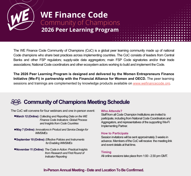 WE Finance Code Peer Learning Programs For National ChampionsWE Finance Code Resources WE Finance Code Peer Learning Programs Information on virtual and in-person learning programs to support the Community of Champions to understand,…Suzanne PerezDecember 3, 2025